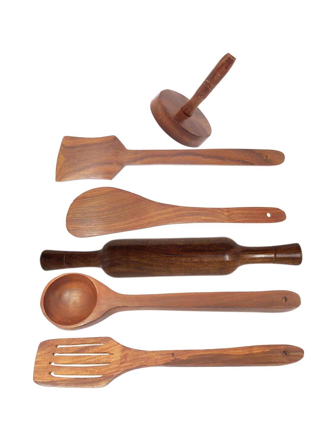 BuzyKart Brown Wooden Kitchen Tool - Pack Of 6