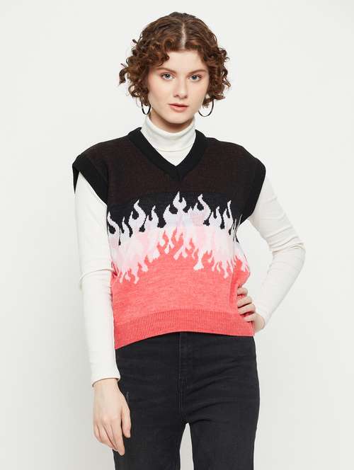 - » women v-neck color block regular pullover