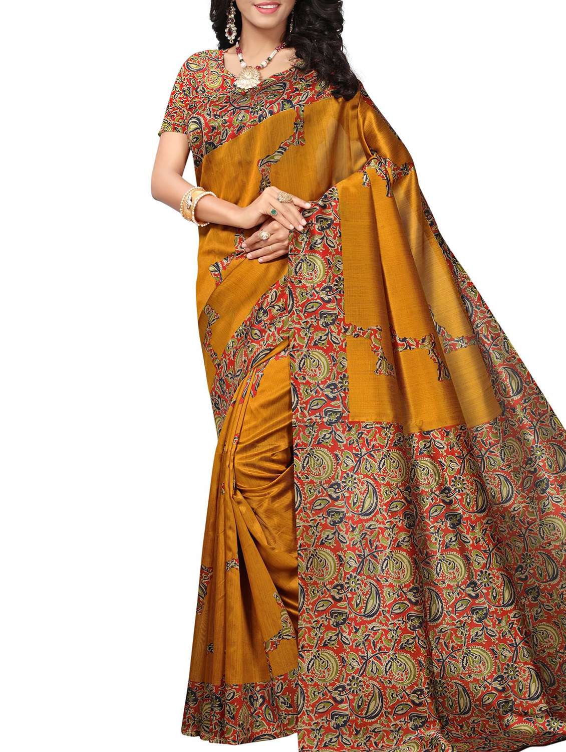 - » kalamakari mustard printed saree with blouse