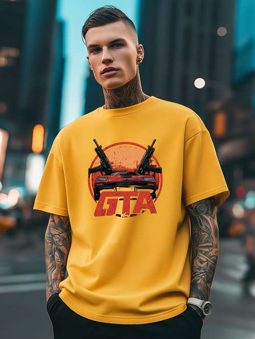 Create a cool and lasting impression in this Oversized t shirt also some times called loose fit t shirt having Round-Neck, Half sleeves and Printed graphics T-shirt for men from BUKKL. Beautifully Crafted with a cotton fabric and a trendy loose fitting, making it more comfortable to wear during all seasons. This stylish oversized t shirt is definitely a must-have in your wardrobe collection.