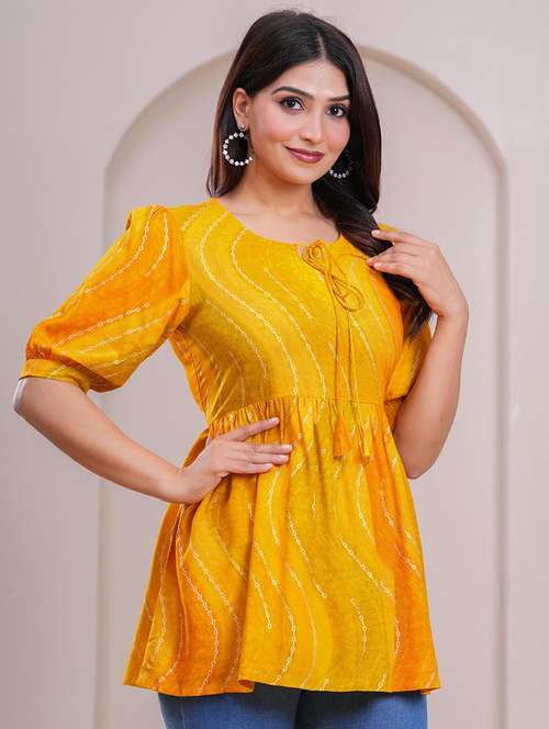 - » women printed puff sleeve a-line top