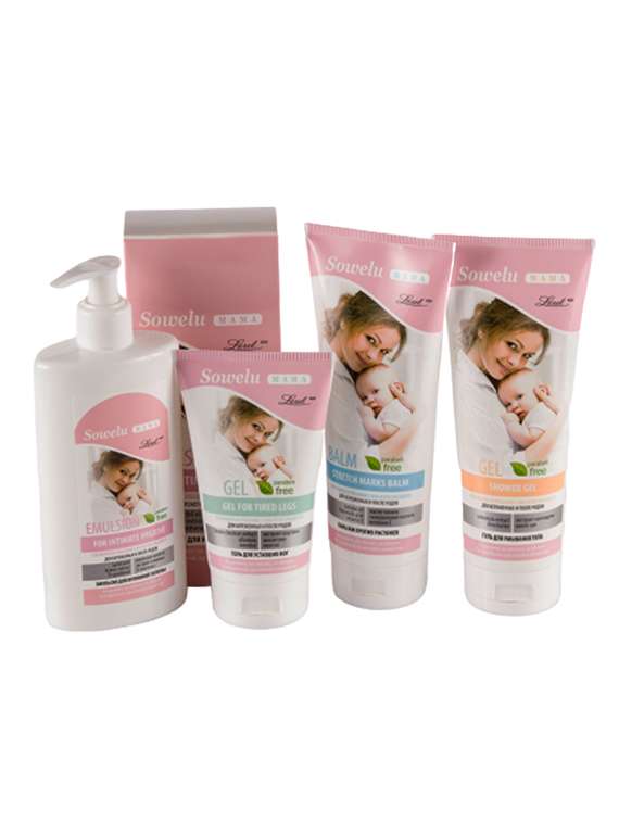 1. Creamy shower gel Sowelu mom's- Perfectly moisturized, smooth, soft and velvety to the touch of the skin, it leaves a pleasant feeling of comfort and freshness that accompanies long after its use. 2. Emulsion for intimate hygiene for Sowelu mom's- Emulsion neutralizes the unpleasant odor, ensuring a feeling of freshness and purity throughout the day. The emulsion does not contain soap. 3. Body balm against stretch marks Sowelu mom's- The care formula of the body balm contains Tamanu Oil which stimulates skin regeneration, improves tension, prevents the formation of stretch marks, gives the effect of nourishment and elasticity. 4. Gel for tired legs for Sowelu mom's- The gel absorbs perfectly, does not irritate the skin while moisturizing and making the skin more elastic.