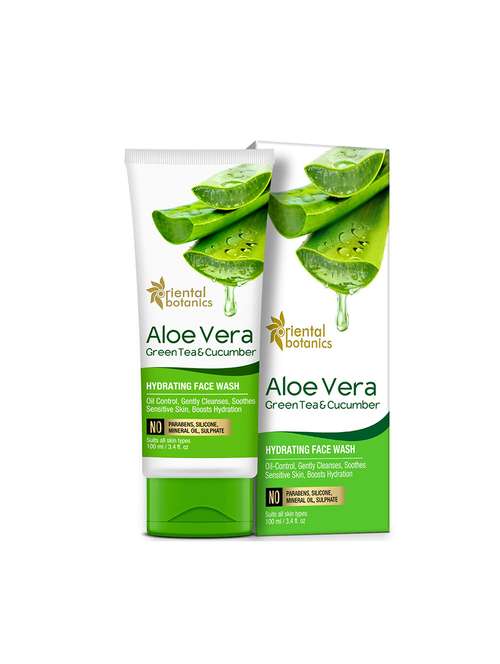 - » oriental botanics aloe vera, green tea & cucumber hydrating face wash - no sulphate, paraben, silicone, 100ml