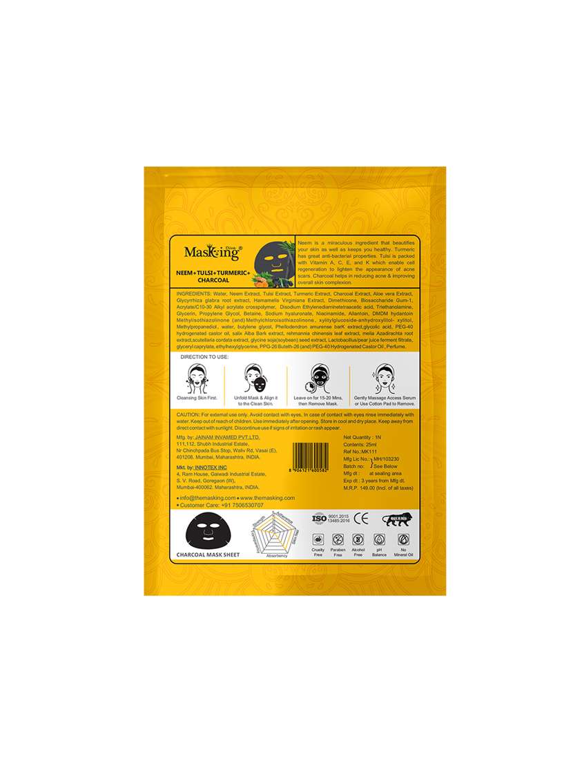 - » masking diva facial sheet mask of neem, tulsi, turmeric and charcoal extract for anti acne for women & men, 100ml (pack of 4)