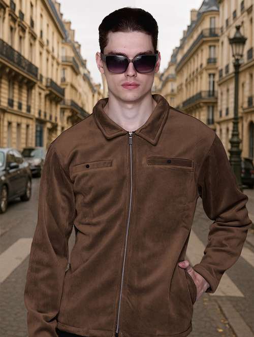 - » men solid long sleeve regular fit casual jacket