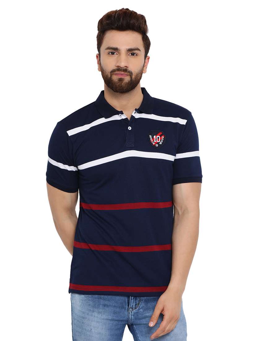 navy blue striped polo t-shirt