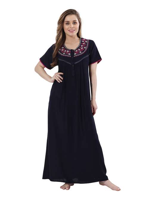 Make yourself look highly comfortable & stylish with this Fine Heavy Cotton Alpine Nighty / Night Gowns. br It has embroidery design pattern with lace details, openable buttons & short sleeves. It can also be used for feeding purpose.. br It is the ultimate blend of comfort. br Size: L (fit to bust 46 inches) br Lenght: Full (approx-55 inches) br Sales Package: 1 Night Gown