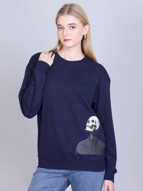 - Recreate your winter style with the all new frisky design options of sweatshirts available in navy blue shades and hues to brighten up the chilly days.