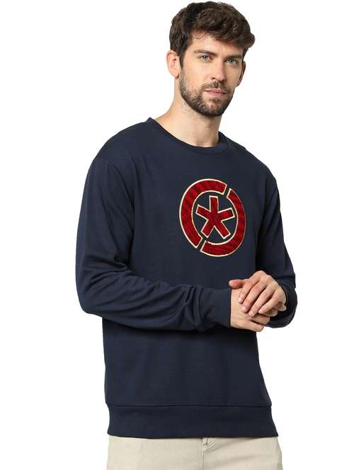 - » navy blue printed sweatshirt