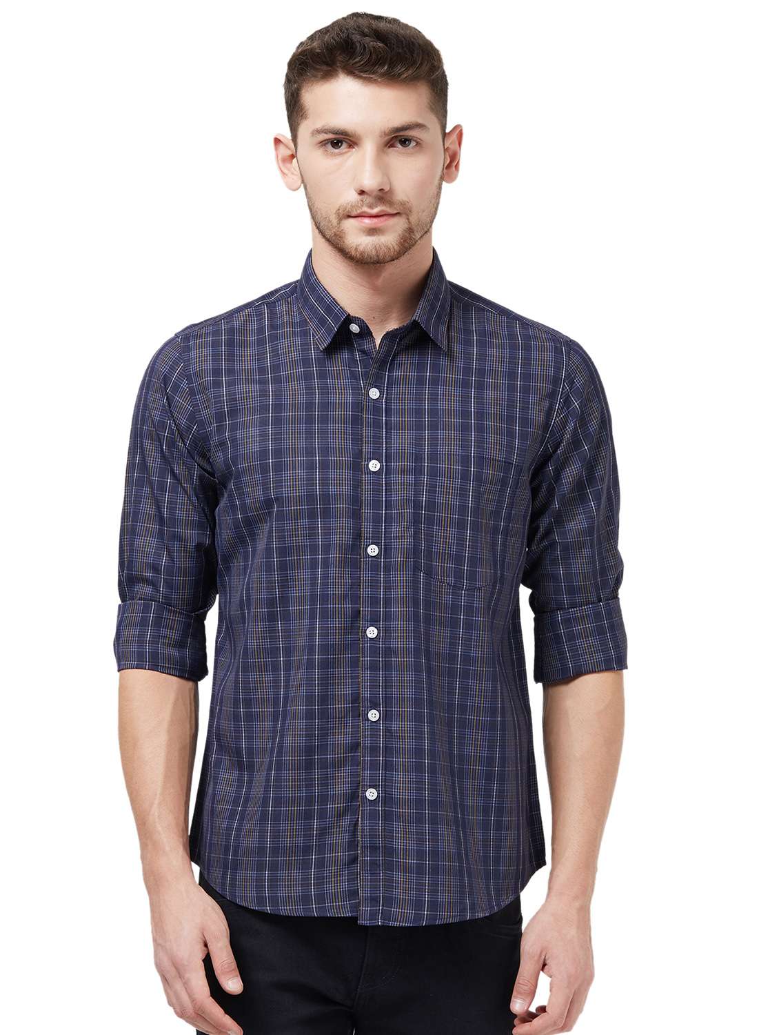 - » navy blue checkered casual shirt