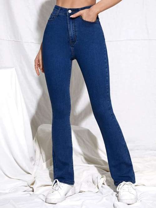 women solid high rise bootcut jean