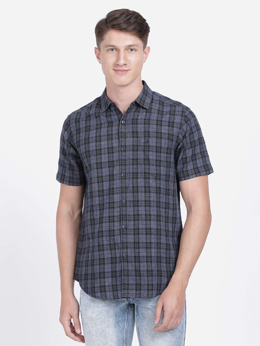navy blue checkered casual shirt