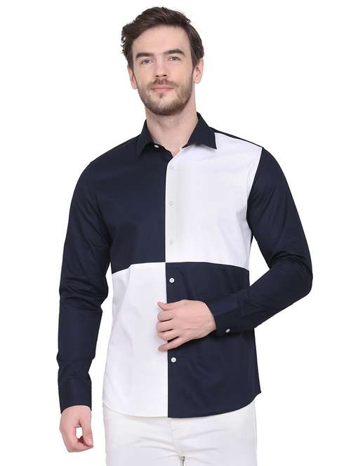 navy blue color block casual shirt