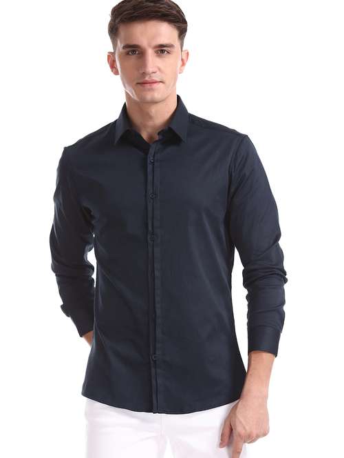 navy blue solid formal shirt