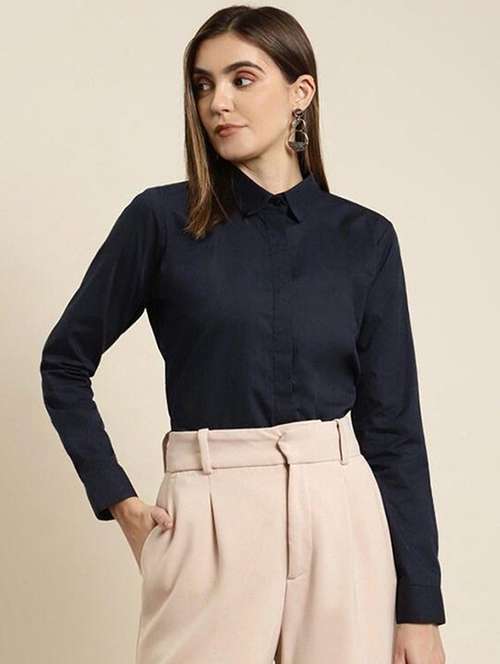 - » women solid collared long sleeve shirt