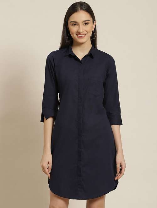 Women Navy Solid Pure Cotton Regular Fit Formal Dress