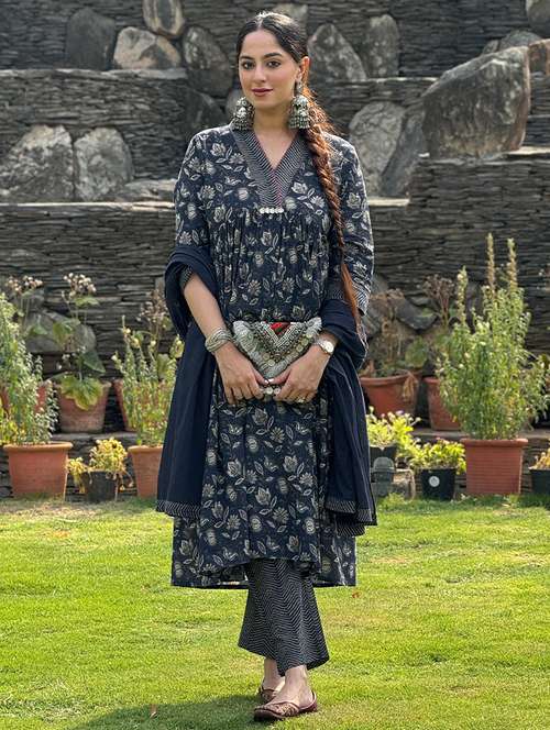 - Find gorgeous sets of ethnic wears in trending designs in blue colors suitable for casual wear of occasions.