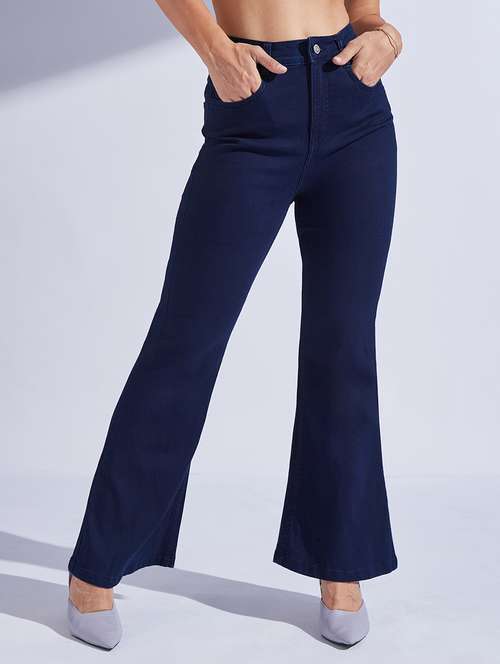 women solid high rise bootcut jean