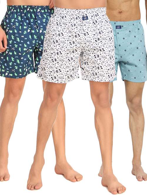 Men's Printed Boxer Shorts 100% Cotton Combo (Pack Of 3) ORANGE, YELLOW, CAMOUFLAGE Boxers