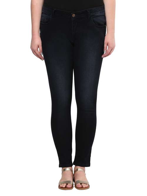 - » zush black color mid rise plus sized women's cotton jeans
