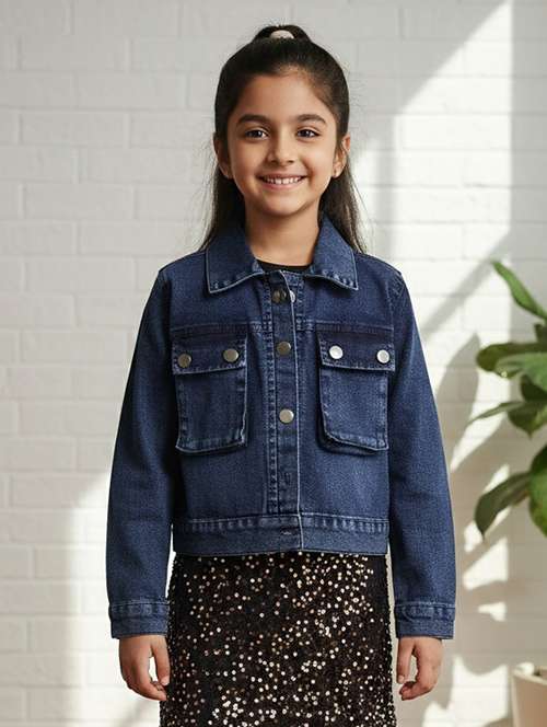 girls collared long sleeve denim jacket