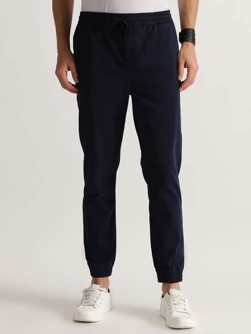 - » men solid navy blue denim jogger