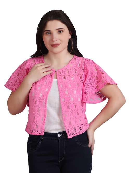 - Head over to LimeRoad and discover your favourite shrugs in lace materials that come in suitable patterns .