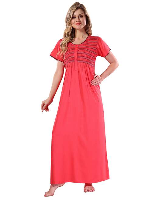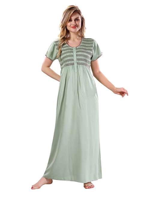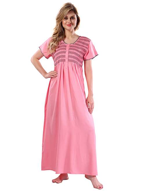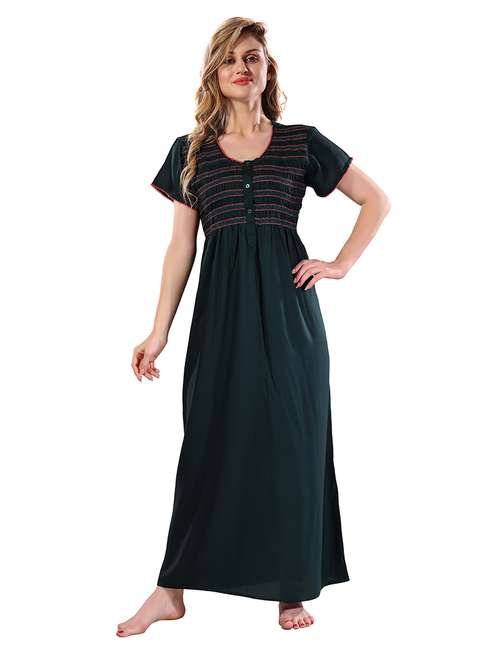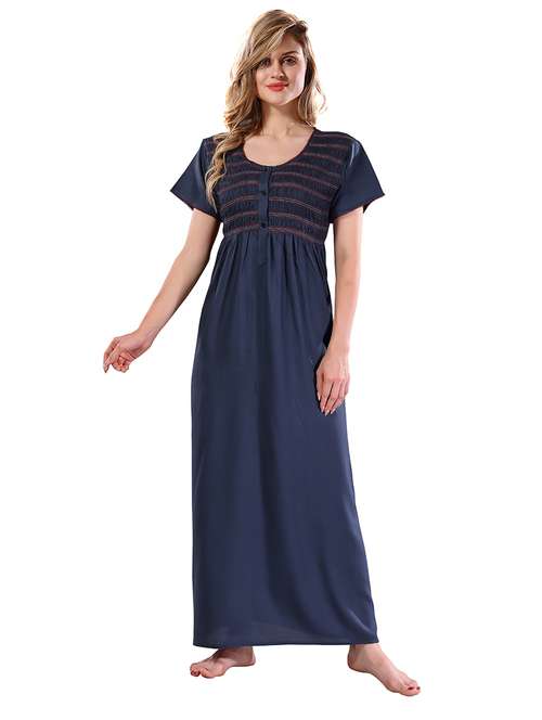 Make yourself look highly comfortable & stylish with this Nighty / Night Gown. Made up of Rayon, It has soft smocked elastic fit on the bust with openable button details. Can be used for maternity purpose also. This Nighty is the ultimate blend of comfort and style.