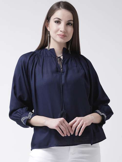 • Opt for this top made up of viscose material and get it in a varied neck design.