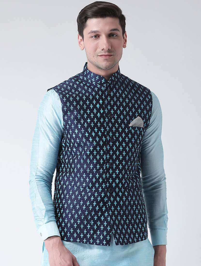 - » navy blue printed nehru jacket
