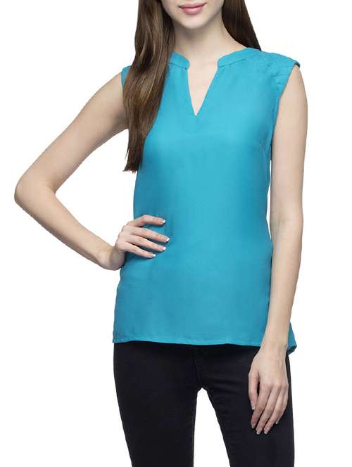 Be office ready with this solid navy blue sleeveless top and get over the Monday blues. Note: Colours may vary due to lighting effect.