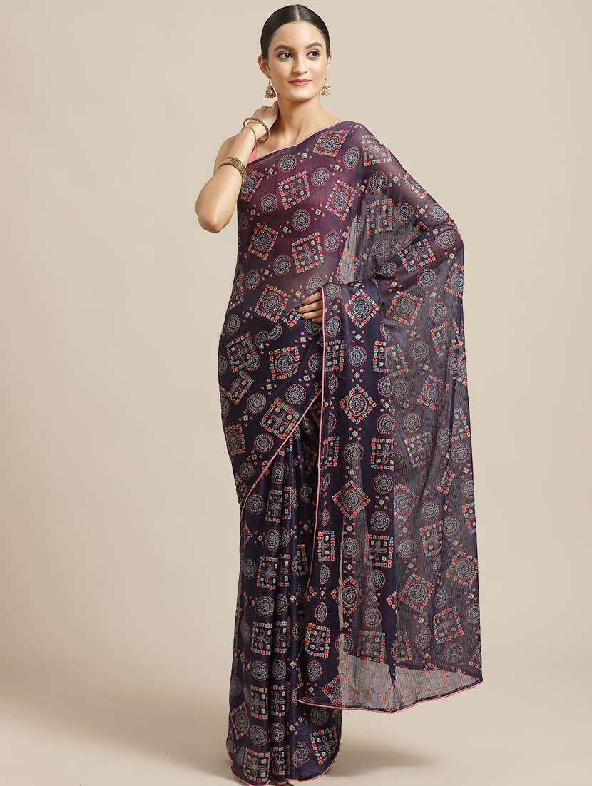 geometrical printed saree with blouse - 17293970 - Very Small Image - 1