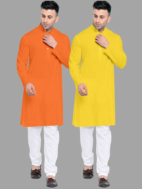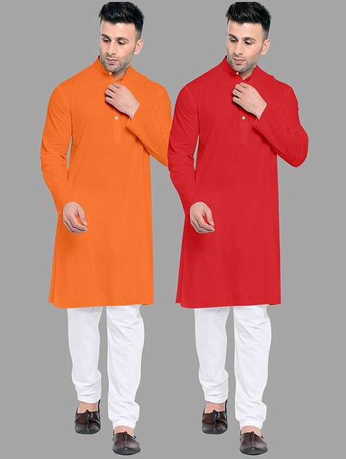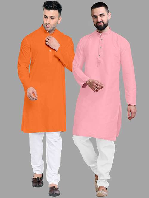 - » men pack of 2 solid mandarin neck kurta pyjama ethnic wear set