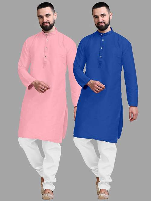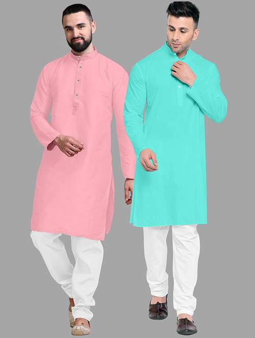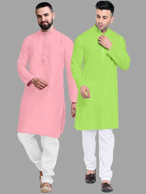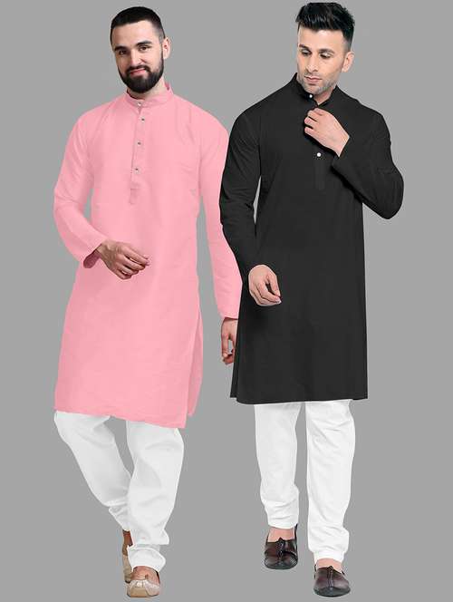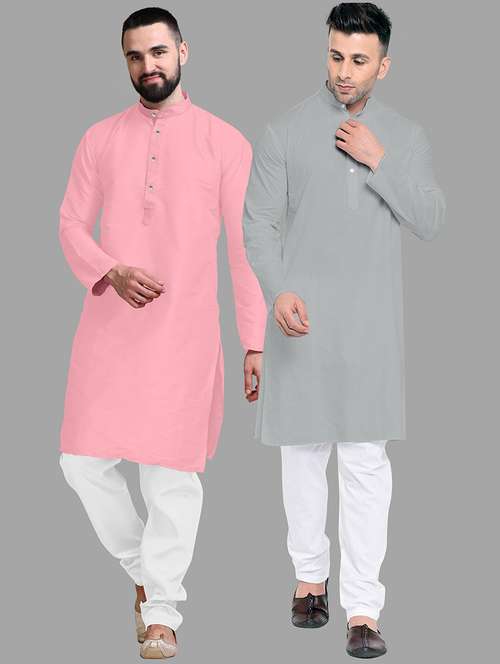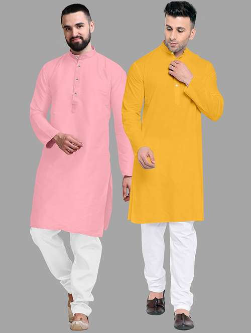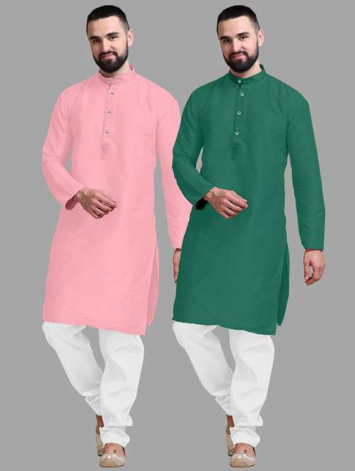 - » men pack of 2 solid mandarin neck kurta pyjama set