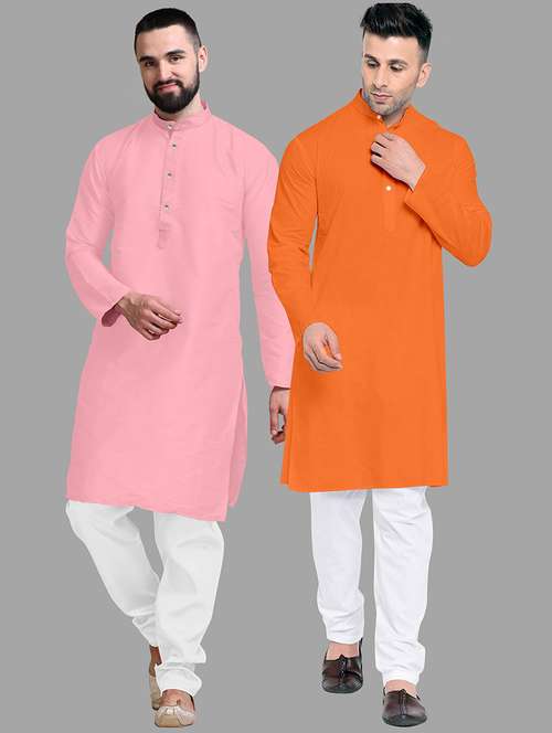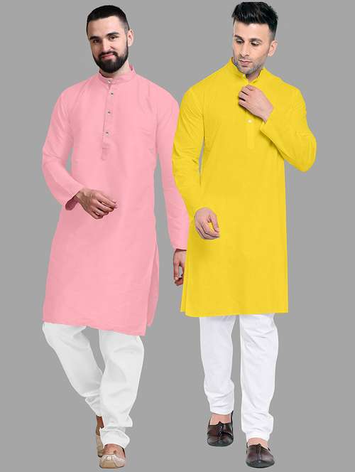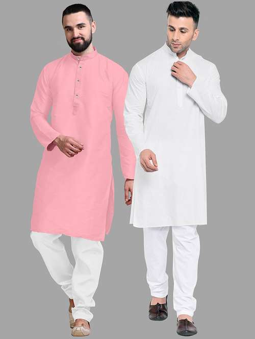 Pack Of 2 Mens Simple Stright Kurta And White Pyjama Only