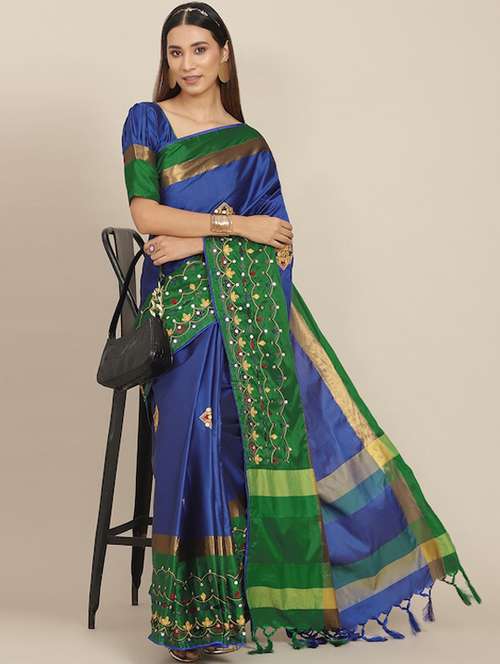 women's embroidered saree with blouse - 20384466 - Very Small Image - 1