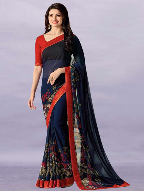 This Trendy Store's beautiful floral printed georgette saree is crafted with superior-quality fabric. The contrast Banarasi jecquard lace border of the saree give it an elegant touch. The saree perfectly adds charm to your appearance at all special events. Pair this saree with matching jewelry for a head-turning look.