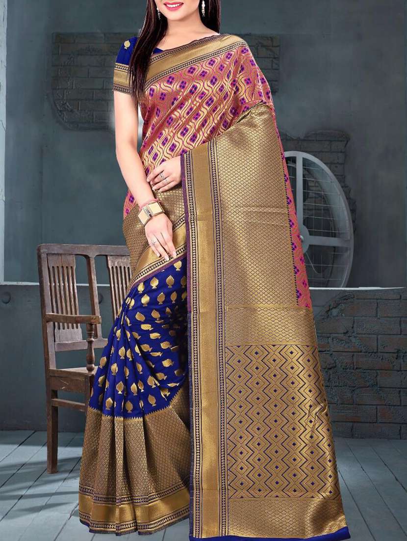 - » half and half ethnic motif self design saree