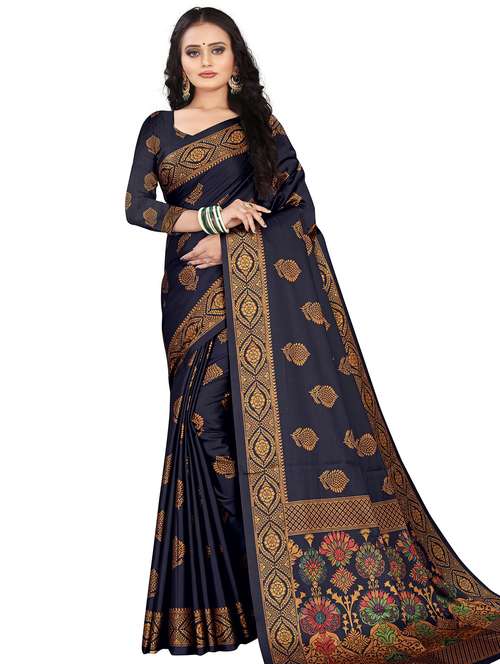 floral handloom saree with blouse - 17665999 - Very Small Image - 1