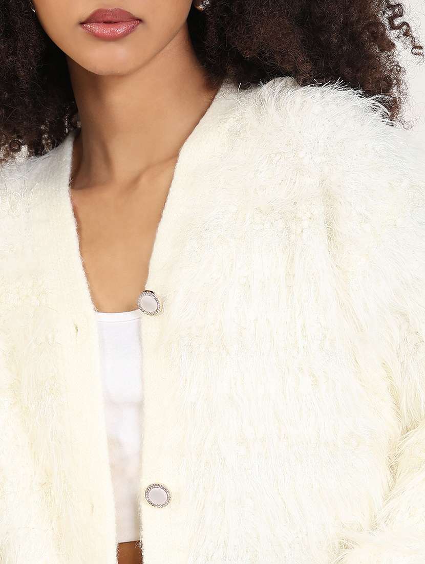 SHOWOFF Edition Women's Off White Solid V-Neck Shrug