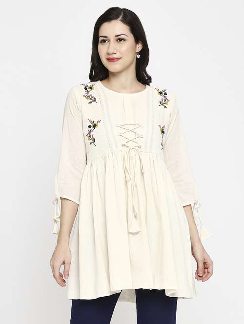 women embroidered three quarter sleeve ethnic top - 22035304 - Very Small Image - 1