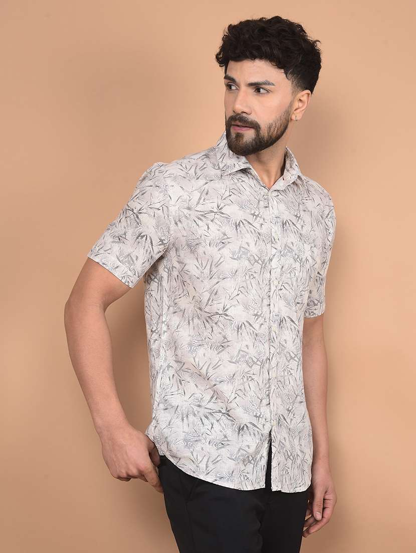men short sleeves printed casual shirt