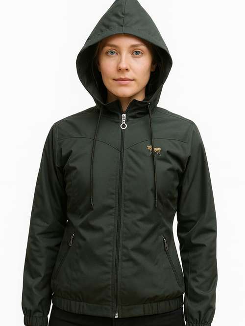 - » women solid long sleeve hooded windcheater jacket