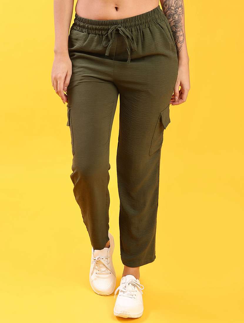 - » women solid mid rise regular fit cargo