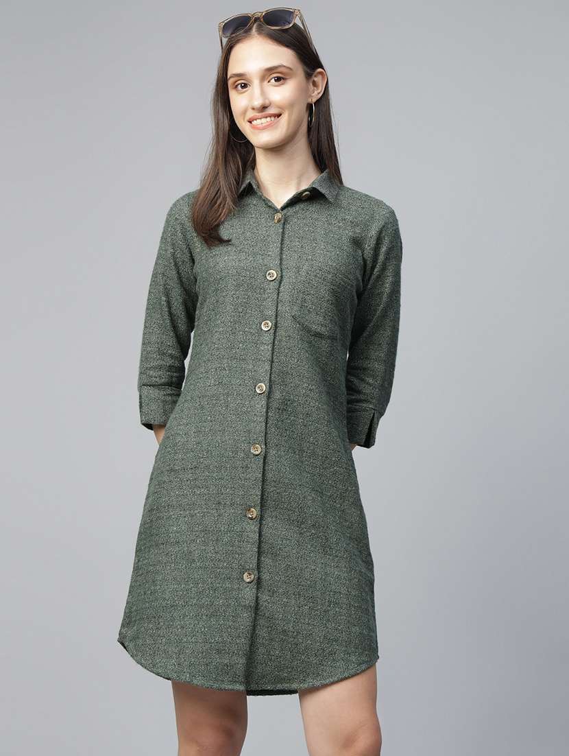 - » women solid collared shirt dress