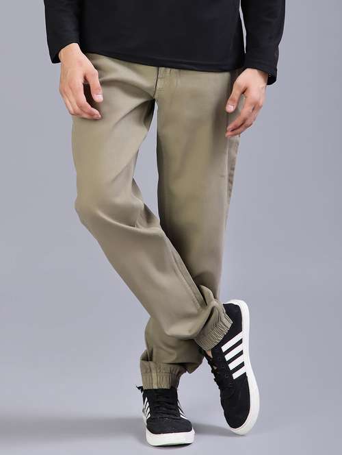 - Wish to complete the chic look on every occasion without compromising on comfort? Then do check out these elasticated joggers for casual wear occasions in olive hues.