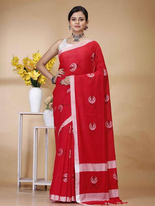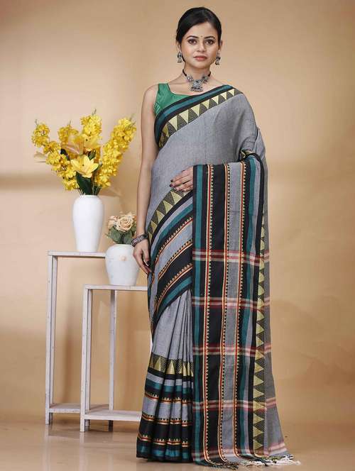 women solid with bordered handloom saree