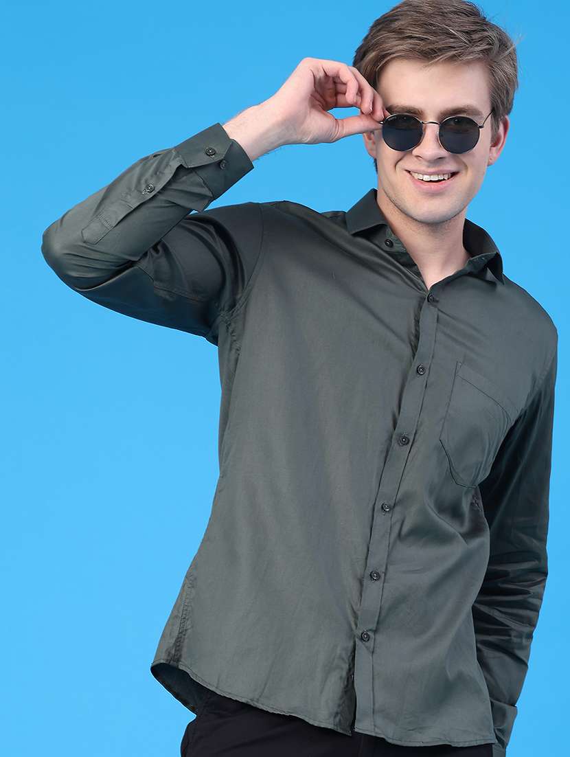 men solid long sleeve slim fit casual shirt