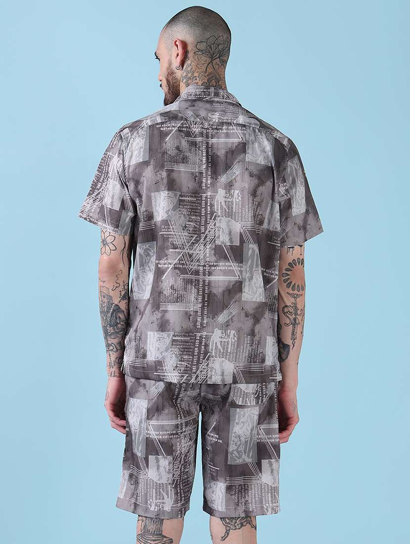 SHOWOFF Edition Men's Olive Printed Cuban Collar Relaxed Fit Co Ords Set