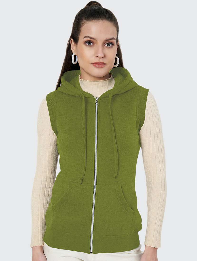 - » women solid sleeveless hooded regular jacket